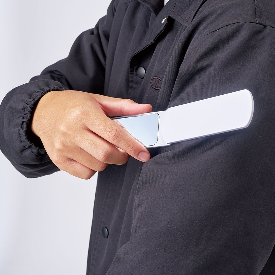 急な商談前や日常使いに、すぐにほこりを払えて便利な洋服クリーナーと